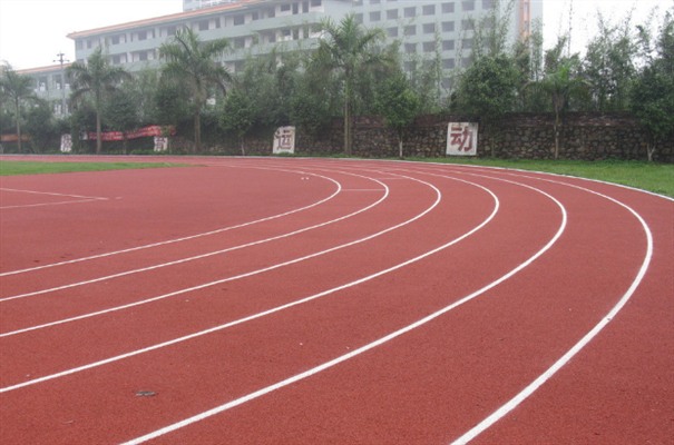 預(yù)制式塑膠跑道:是一種預(yù)制型卷材跑道。以天然橡膠及人工橡膠為基礎(chǔ),混合礦物質(zhì)填充劑、穩(wěn)定劑及色料于工廠內(nèi)連續(xù)壓延處理,并以近300℃的高溫加硫硬化一體成型,機(jī)械壓花,紋路一致的雙層結(jié)構(gòu)合成橡膠。(專業(yè)的田徑運(yùn)動(dòng)場(chǎng)的常用類型,但其價(jià)格之高,是一般的大中小學(xué)所不能承受的)