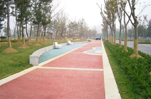 彩色透水混凝土地坪是用粗骨料表面包裹著一層薄漿料相互粘結成蜂窩狀的地坪材料,能讓雨水流入地下,有效補充地下水。并且色彩繽紛,與自然融合,使城市環(huán)境建設更加和諧。