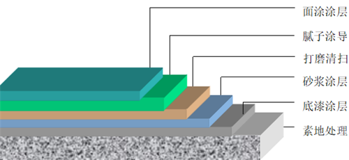 4、刮涂環(huán)氧樹脂中涂砂漿層兩道并打磨吸塵處理;