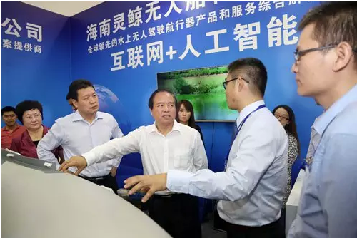 ▲海南省委副書記、省長劉賜貴一行蒞臨海南靈鯨無人船科技有限公司展位