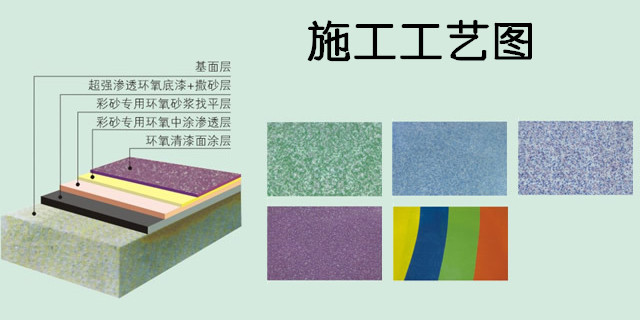 (6)環(huán)氧彩砂地坪施工溫度應控制在大于5℃,相對濕度應控制在小于60%。