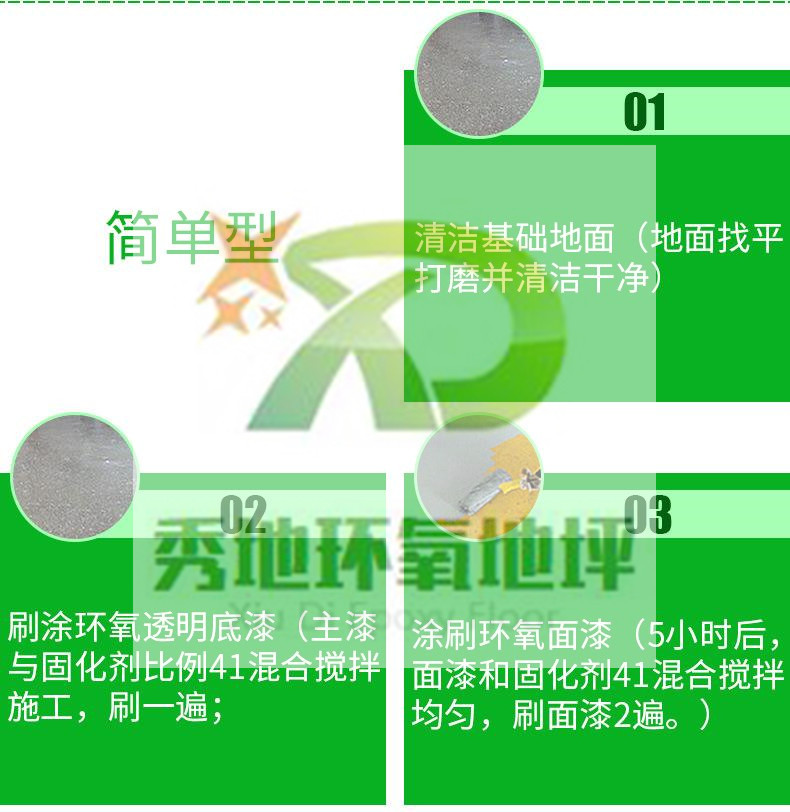 環(huán)氧地坪_秀地環(huán)氧地坪是一種無接縫、質(zhì)地堅實、耐藥品性佳、防腐、防塵、保養(yǎng)方便、維護(hù)費用低廉等優(yōu)點?筛鶕(jù)不同的用途要求設(shè)計多種方案:1-5mm厚的自流平地面,防滑耐磨涂裝,砂漿型涂裝,防靜電,防腐蝕涂裝等。環(huán)氧地坪大致可以分為:環(huán)氧樹脂磨石地坪、環(huán)氧樹脂彩砂壓砂地坪、環(huán)氧樹脂自流平地坪、環(huán)氧樹脂砂漿型地坪、環(huán)氧樹脂平涂型地坪。一般環(huán)氧地坪,也叫涂裝型環(huán)氧地坪、裝飾性及潔凈度等需要不高的場所,如倉庫、一般出產(chǎn)車間等等。