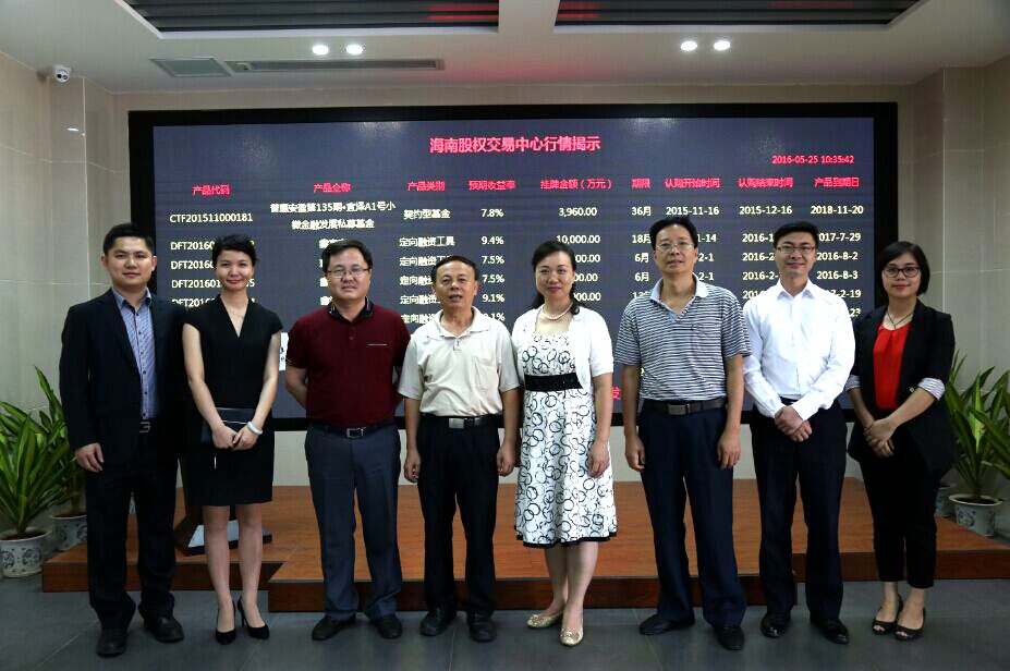 5月25日,省國資委國有企業(yè)監(jiān)事會主席彭修益一行蒞臨海南股權(quán)交易中心,詳細了解股交中心成立以來的運營狀況及未來發(fā)展規(guī)劃,并對中心下一步工作開展做了指導。