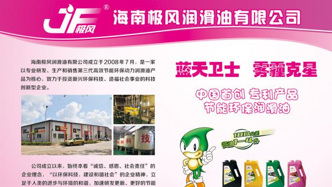 | 企業(yè)說(shuō)明: | 海南極風(fēng)高科技股份有限公司是以專業(yè)研發(fā)、生產(chǎn)和銷(xiāo)售節(jié)能環(huán)保潤(rùn)滑油產(chǎn)品為核心,致力于投資新興環(huán)??萍肌⒃旄I鐣?huì)事業(yè)的高新技術(shù)企業(yè)。 自主研發(fā)生產(chǎn)的 “極風(fēng)牌”節(jié)能環(huán)保汽車(chē)發(fā)動(dòng)機(jī)潤(rùn)滑油,以其有效降低汽車(chē)尾氣碳?xì)浠衔铮℉C)和一氧化碳(CO)排放量的環(huán)保功能,平均節(jié)油率17.47%(百公里節(jié)省燃油1-4升),有效降低汽車(chē)尾氣PM2.5顆粒物排放達(dá)36.4%,HC、CO、NOX等有毒有害氣體排放數(shù)據(jù)均優(yōu)于歐Ⅴ標(biāo)準(zhǔn),堪稱藍(lán)天衛(wèi)士、霧霾克星。因此,深受廣大用戶的認(rèn)可和好評(píng),迅速成為汽車(chē)(船)發(fā)動(dòng)機(jī)潤(rùn)滑油換代升級(jí)首選的領(lǐng)先產(chǎn)品。 回顧海南極風(fēng)高科技股份有限公司的創(chuàng)業(yè)歷程,就是堅(jiān)持理想創(chuàng)新發(fā)展的實(shí)踐歷程。2011年8月在中國(guó)(三亞)國(guó)際熱帶雨林汽車(chē)越野挑戰(zhàn)賽上,“極風(fēng)”成為自由島參賽車(chē)隊(duì)專用潤(rùn)滑油,并助力該車(chē)隊(duì)奪得第三名,實(shí)現(xiàn)了歷史性的突破。 2011年11月獲得海南省高新技術(shù)項(xiàng)目認(rèn)定。 2013年2月獲得國(guó)內(nèi)同行業(yè)唯一的國(guó)家發(fā)明專利授權(quán),發(fā)明專利名稱:節(jié)能環(huán)保汽車(chē)發(fā)動(dòng)機(jī)潤(rùn)滑油,專利號(hào):ZL 201110095592.6。 2013年8月順利通過(guò)ISO9001質(zhì)量管理體系認(rèn)證。 2013年5月獲得全國(guó)交通運(yùn)輸節(jié)能減排推薦產(chǎn)品(技術(shù))榮譽(yù)。 2015年10月被評(píng)為高新技術(shù)企業(yè)。 公司為邁向資本市場(chǎng)做好準(zhǔn)備,于2015年進(jìn)行了股份制改制。 今天,“極風(fēng)”正以中華傳統(tǒng)文化“太極”之“極”、漢唐精神“大風(fēng)歌”之“風(fēng)”植根市場(chǎng),深入人心。