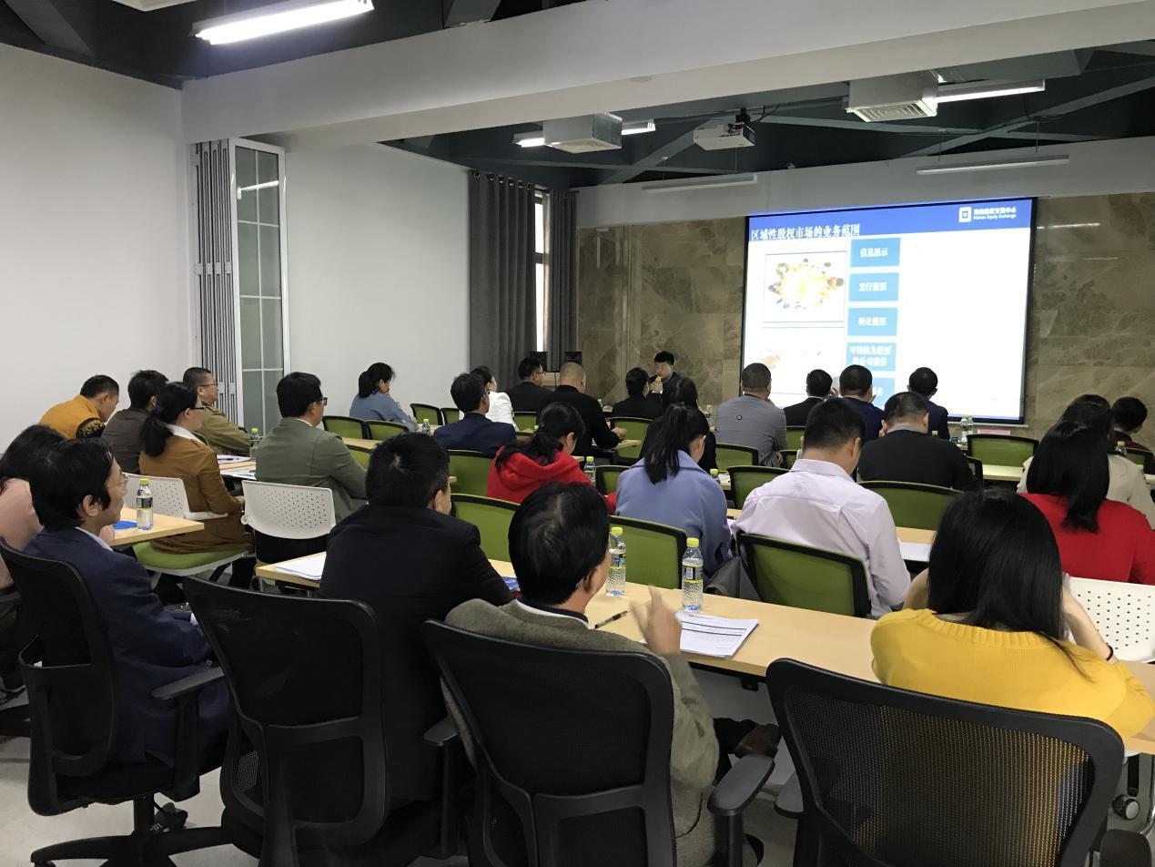 培訓(xùn)現(xiàn)場(chǎng),股交中心風(fēng)險(xiǎn)管理部負(fù)責(zé)人講解了企業(yè)自律管理、規(guī)范發(fā)展的要點(diǎn)和重要性。隨后,相關(guān)業(yè)務(wù)部門代表為在場(chǎng)的企業(yè)介紹股交中心的服務(wù)功能、政府相關(guān)支持政策、創(chuàng)新融資業(yè)務(wù)及股權(quán)轉(zhuǎn)讓業(yè)務(wù)等相關(guān)內(nèi)容,幫助掛牌企業(yè)熟悉區(qū)域性股權(quán)市場(chǎng)最新監(jiān)管環(huán)境及政策,充分地利用資本市場(chǎng),實(shí)現(xiàn)規(guī)范經(jīng)營(yíng),快速發(fā)展。