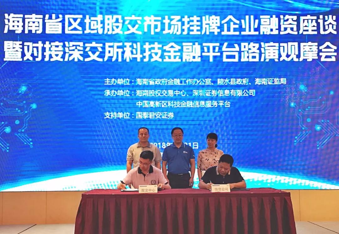 為支持我省區(qū)域性股權(quán)市場發(fā)展,加強(qiáng)海南股權(quán)交易中心掛牌企業(yè)與深圳證券交易所的有效對(duì)接,將省外資本與我省重點(diǎn)產(chǎn)業(yè)掛牌企業(yè)發(fā)展相融合,更大范圍拓寬我省中小企業(yè)融資渠道,更好地服務(wù)海南自由貿(mào)易區(qū)(港)建設(shè),7月31日,海南省政府金融工作辦公室、陵水縣政府和海南證監(jiān)局聯(lián)合在陵水縣舉辦海南省區(qū)域股交市場掛牌企業(yè)融資座談暨深交所科技金融平臺(tái)路演觀摩會(huì)?;顒?dòng)由海南股權(quán)交易中心、深圳證券信息有限公司和中國高新區(qū)科技金融信息服務(wù)平臺(tái)一同承辦,并獲得國泰君安證券的大力支持。