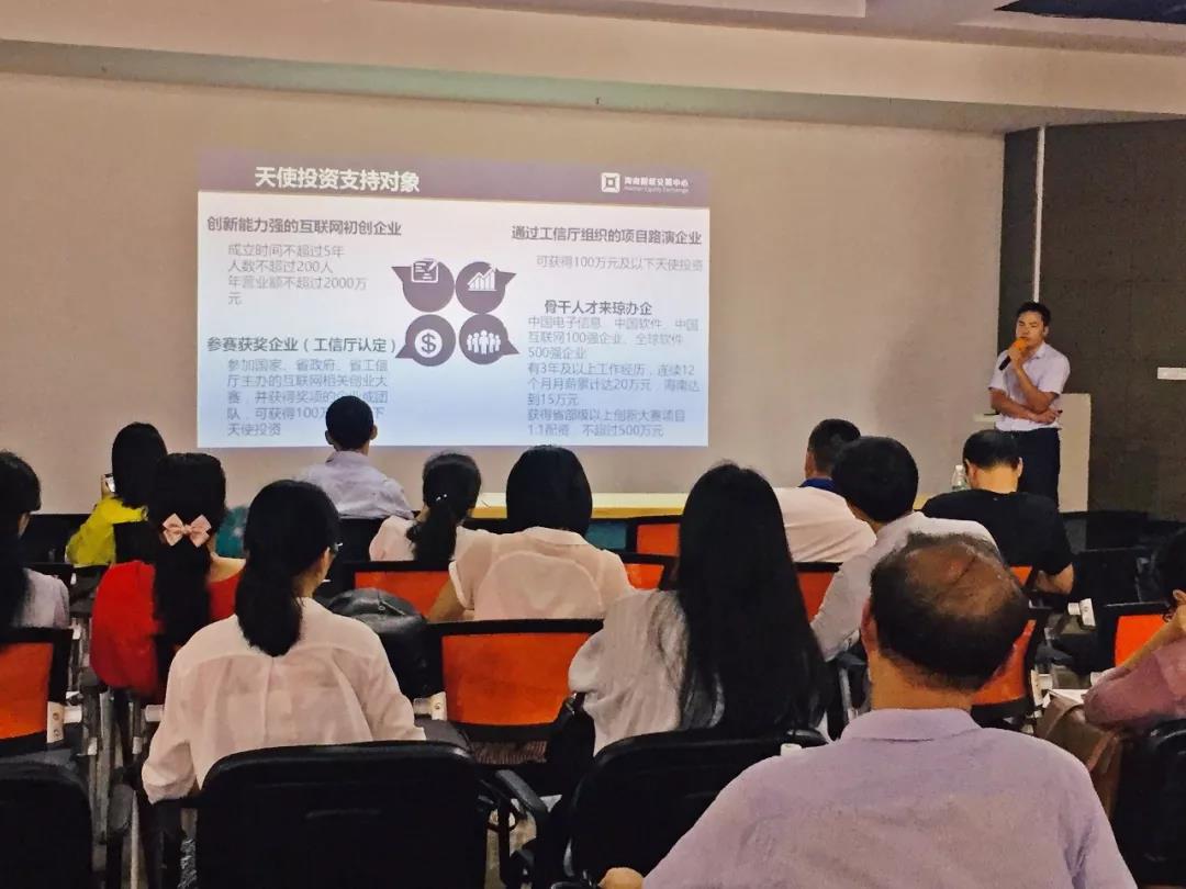 股交中心機(jī)構(gòu)合作部負(fù)責(zé)人蔣文斌為在場(chǎng)企業(yè)介紹了區(qū)域性股權(quán)交易市場(chǎng)的現(xiàn)狀及股交中心的發(fā)展?fàn)顩r,并就“股交中心如何助力海南高新技術(shù)及科技型企業(yè)發(fā)展”這一核心問(wèn)題進(jìn)行了詳細(xì)的說(shuō)明和講解,同時(shí),向在場(chǎng)的企業(yè)介紹了股交中心于6月20日正式設(shè)立的海南首個(gè)專(zhuān)注于互聯(lián)網(wǎng)初創(chuàng)企業(yè)天使投資的服務(wù)板塊“天使板”及天使投資相關(guān)情況,鼓勵(lì)和歡迎高新技術(shù)及科技型企業(yè)掛牌天使板,通過(guò)天使板實(shí)現(xiàn)企業(yè)融資和發(fā)展的目標(biāo)。