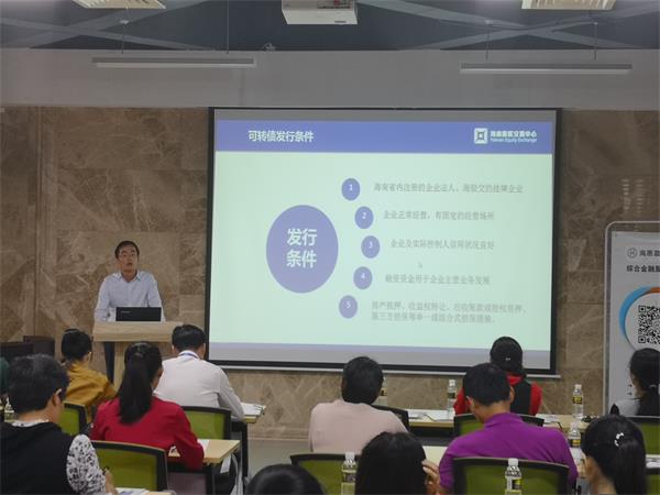 在接下來的培訓環(huán)節(jié)中,海股交相關(guān)部門工作人員向到場的企業(yè)負責人及高管詳細介紹了海股交的定位與服務功能、企業(yè)合規(guī)管理要求以及股權(quán)轉(zhuǎn)讓、定向增資、發(fā)行可轉(zhuǎn)債等方面的內(nèi)容。