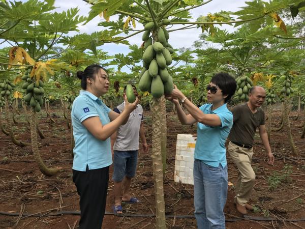 為了幫助加六村貧困農(nóng)戶打開紅心木瓜的銷路,在海南控股、海南金控的指導(dǎo)下,海南股交在“?;萦逼脚_(tái)發(fā)起木瓜眾籌,借助微信精準(zhǔn)營(yíng)銷,在極短的時(shí)間內(nèi)完成了木瓜的銷售,助力貧困農(nóng)戶拓寬銷售渠道,實(shí)實(shí)在在增加貧困農(nóng)戶收入。這不,14日下午眾籌成功,15日一大早海南股交扶貧眾籌團(tuán)隊(duì)在海南股交副總經(jīng)理兼財(cái)務(wù)總監(jiān)唐玉萍及總經(jīng)理助理卜麗麗的帶領(lǐng)下來到加六村,幫助農(nóng)戶一起進(jìn)行木瓜采摘、分揀、優(yōu)選好果等工作,將木瓜運(yùn)送至海口倉(cāng)庫,為后續(xù)的發(fā)貨做準(zhǔn)備。值得一提的是,本次海南股交發(fā)動(dòng)旗下掛牌企業(yè)專業(yè)的水果貿(mào)易商海南奢旅貿(mào)易有限公司,一同幫助農(nóng)戶將木瓜統(tǒng)一包裝、打包發(fā)貨。