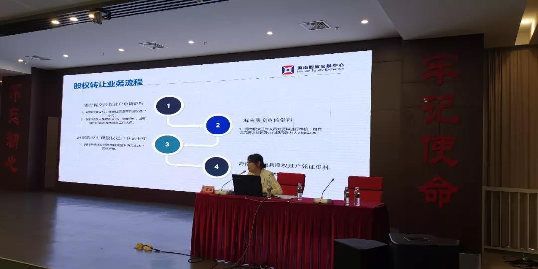 培訓(xùn)會(huì)上,海南股交總經(jīng)理助理卜麗麗向現(xiàn)場參會(huì)人員介紹了商業(yè)銀行股權(quán)登記托管的重要性和必要性。她表示,股權(quán)登記托管是區(qū)域性股權(quán)交易市場的一項(xiàng)基礎(chǔ)工作,也是主要業(yè)務(wù)之一。海南股交作為省內(nèi)唯一合法的區(qū)域性股權(quán)交易市場運(yùn)營機(jī)構(gòu),成立至今,股權(quán)托管企業(yè)共計(jì)90家,托管總股本達(dá)67.05億股,積累了豐富的股權(quán)托管工作經(jīng)驗(yàn)。2018年,海南銀行股份有限公司在海南股交成功辦理股權(quán)登記托管手續(xù),成為省內(nèi)首家完成股權(quán)登記托管的法人銀行,標(biāo)志著海南省銀行股權(quán)登記托管業(yè)務(wù)實(shí)現(xiàn)零的突破。