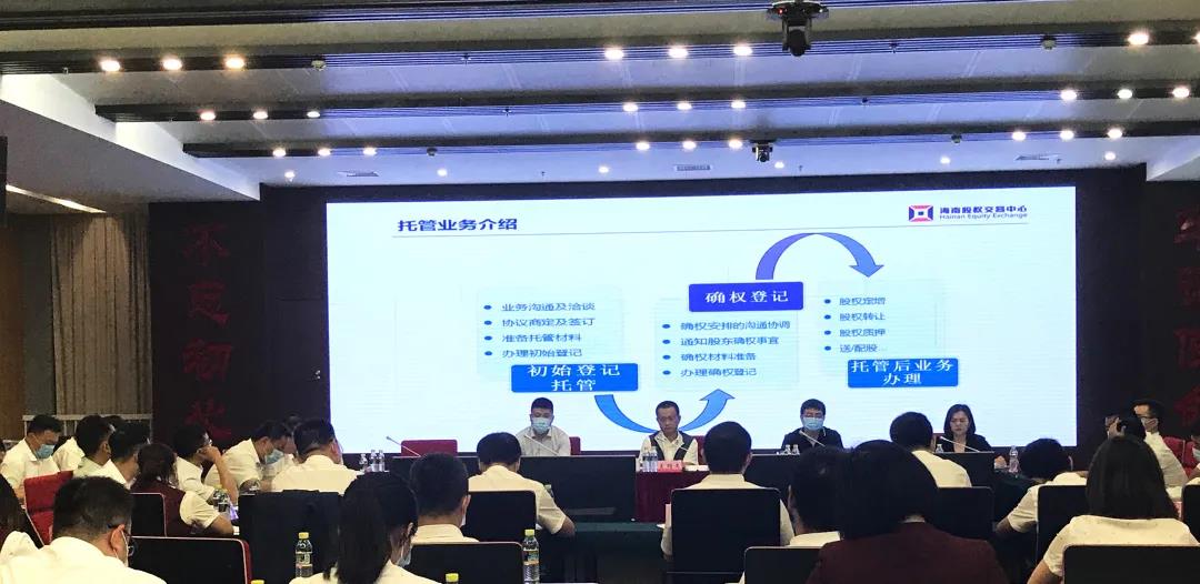 海南股交工作人員向與會人員介紹股權(quán)托管政策及我省農(nóng)商行股權(quán)托管業(yè)務(wù)開展情況,重點講解了初始登記及確權(quán)登記的流程和細則。在互動環(huán)節(jié),各市縣行社股權(quán)登記托管工作負責(zé)人就托管工作中遇到的問題及存在的難點、監(jiān)管政策和后續(xù)辦理流程等問題進行了充分交流。
