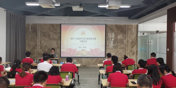 為進(jìn)一步深入學(xué)習(xí)貫徹黨的十九屆四中全會(huì)精神, 近日,海南金控黨總支委員、副總經(jīng)理兼財(cái)務(wù)總監(jiān),海南股交董事長(zhǎng)吳惠玉在海南股交進(jìn)行黨的十九屆四中全會(huì)精神宣講暨專題黨課,海南股交全體員工參加會(huì)議。