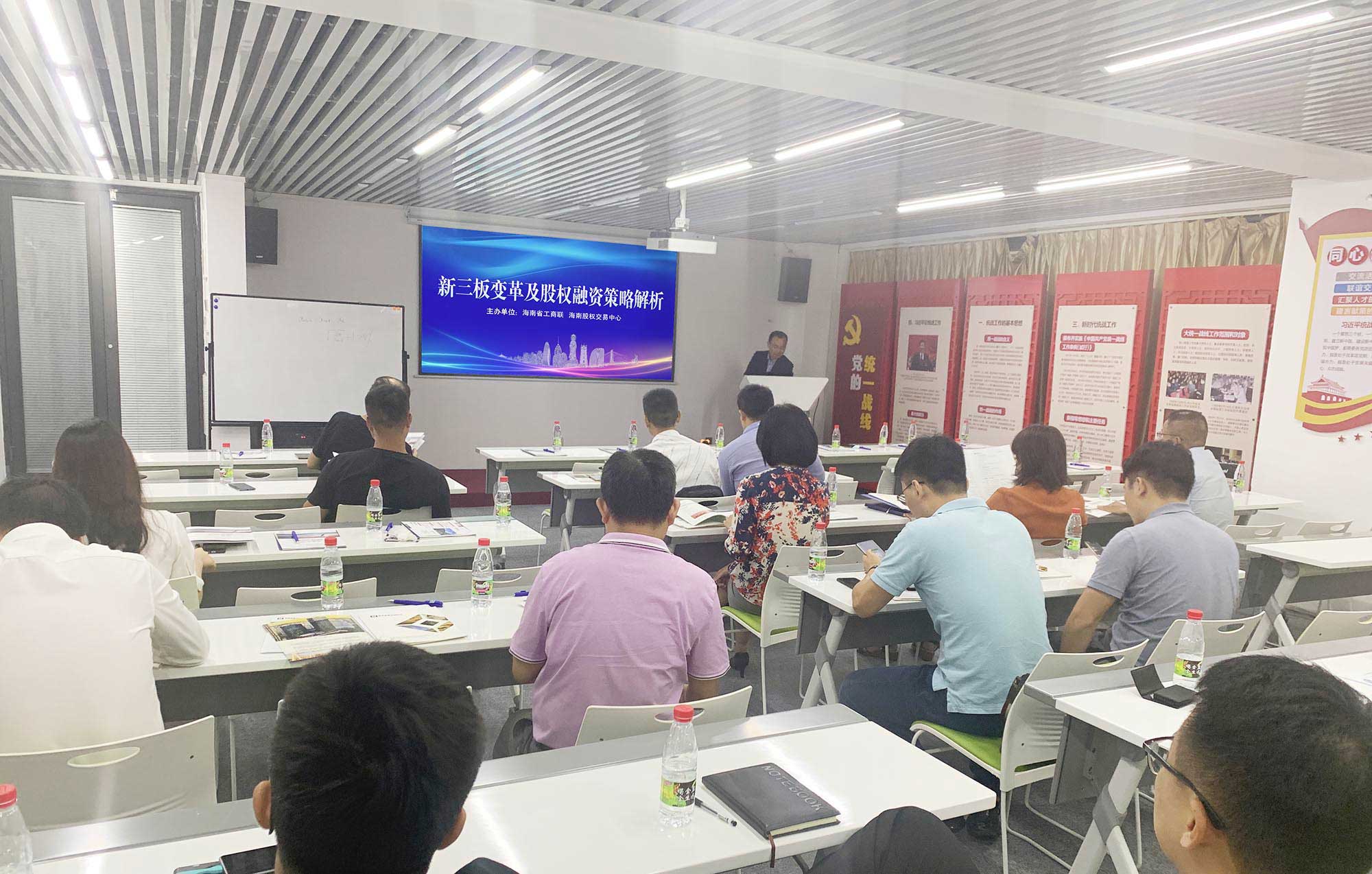為促進(jìn)我省中小企業(yè)把握當(dāng)前多層次資本市場(chǎng)特點(diǎn)和國(guó)家政策方向,提升戰(zhàn)略決策能力并做好資本路徑規(guī)劃,由海南省工商聯(lián)、海南股權(quán)交易中心聯(lián)合主辦的“資本市場(chǎng)最新情況解讀---新三板變革及股權(quán)融資策略解析”專題講座在??跒I海國(guó)際電子商務(wù)產(chǎn)業(yè)園如期舉行,海南本地40余家企業(yè)參加本次活動(dòng)。
