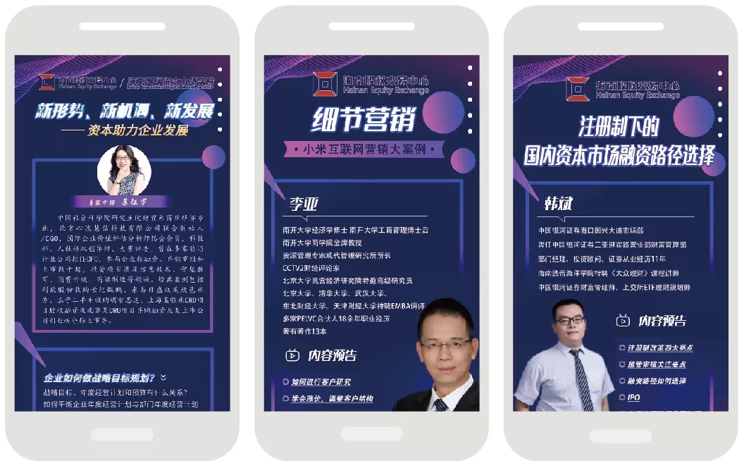 線上課程包含直通海股交、自貿(mào)港新觀察、創(chuàng)業(yè)與投融資三大板塊,涉及四板基礎(chǔ)知識、自貿(mào)港政策解讀、企業(yè)家成功案例分享等內(nèi)容,和線下課形成強勢互補,為企業(yè)家學(xué)員提供優(yōu)質(zhì)高端的課程,幫助學(xué)員提升自身綜合素質(zhì),破解企業(yè)運營難題。
