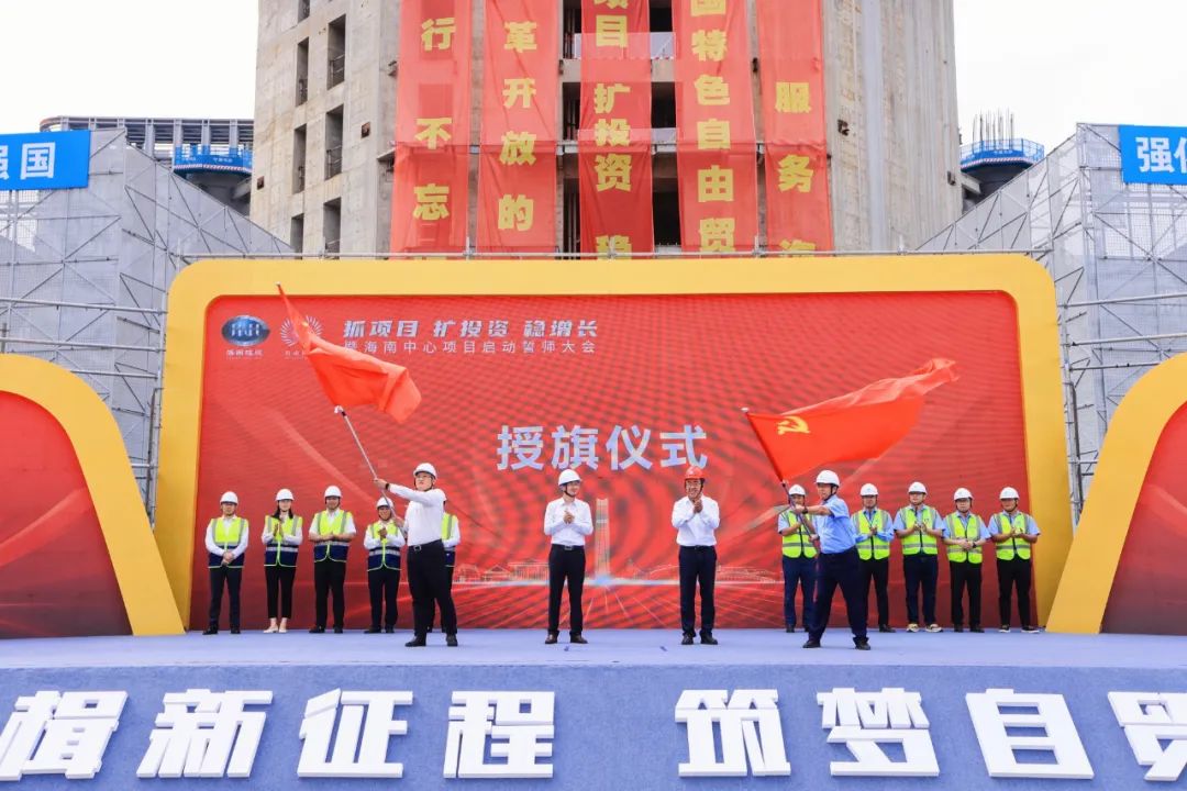 誓師大會現(xiàn)場還舉行了授旗儀式,海南控股黨委書記、董事長周軍平為海南機場海南中心項目建設團隊授旗,中建三局彭明祥副總經(jīng)理為中建三局海南中心項目建設團隊授旗。