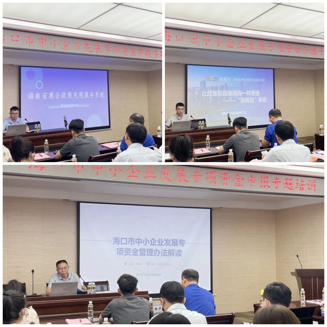 市科工信局四級調(diào)研員熊華榮表示,海口市科工信局積極優(yōu)化提升管理服務(wù)改革,努力實現(xiàn)政策從出臺到落地的高效運轉(zhuǎn),為保障企業(yè)創(chuàng)新發(fā)展、享受政策紅利提供有力支撐。希望在場的金融機構(gòu)及企業(yè)代表能夠了解??谑兄行∑髽I(yè)發(fā)展專項資金管理辦法,掌握海口市中小企業(yè)發(fā)展專項資金線上申報的流程,通過海易兌平臺,降低企業(yè)申報過程人工成本和時間成本,實現(xiàn)惠企資金安全高效兌現(xiàn),增強企業(yè)的獲得感和幸福感。