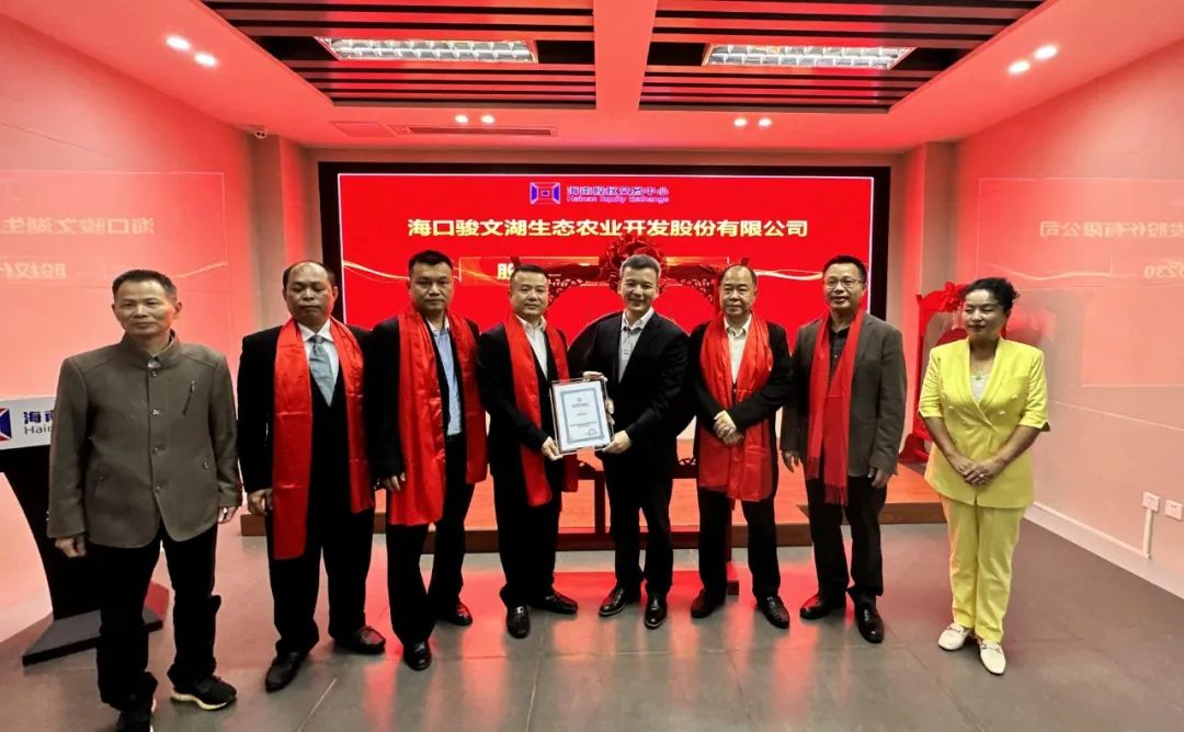 2023年12月28日下午,海南股交在老城舉辦交易板企業(yè)掛牌鳴鑼儀式,海南金控黨總支副書記、副總經(jīng)理潘沖,海南省商業(yè)總會(huì)會(huì)長(zhǎng)劉宏和,海南省貿(mào)促會(huì)國(guó)際聯(lián)絡(luò)部部長(zhǎng)李平功、四級(jí)調(diào)研員蔡國(guó)軍,海南股交總經(jīng)理吳杰及相關(guān)金融機(jī)構(gòu)、企業(yè)代表近60人參加本次活動(dòng)。四家優(yōu)質(zhì)企業(yè)??隍E文湖生態(tài)農(nóng)業(yè)開發(fā)股份有限公司、中視智行科技(海南)股份有限公司、海南逸途文旅發(fā)展股份有限公司、嘉瑞互聯(lián)網(wǎng)科技(海南)股份有限公司分別上臺(tái)鳴鑼,成功掛牌海南股交交易板。