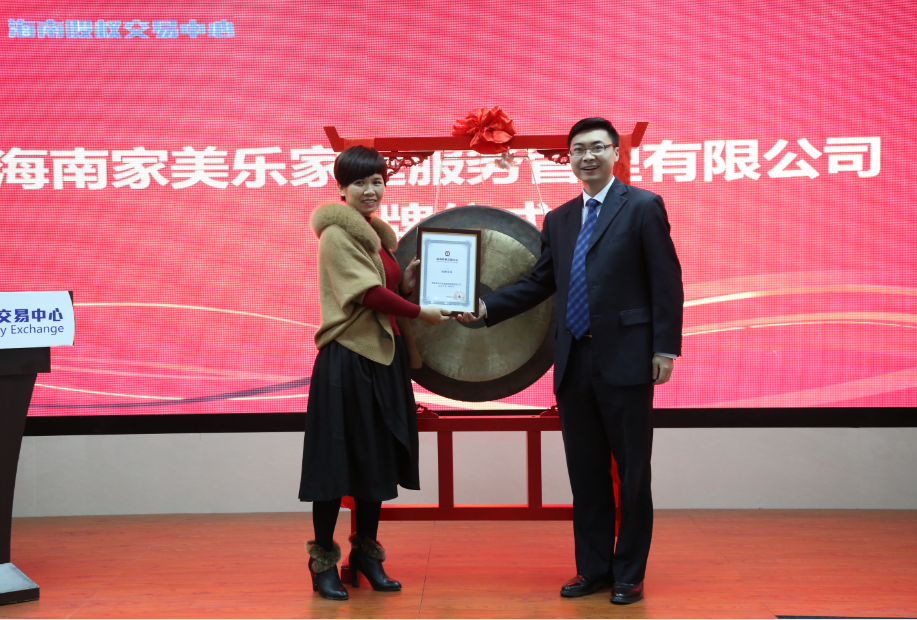 參與本次集體掛牌儀式的企業(yè)分別是:海南大信園林股份有限公司、海南高升醫(yī)藥科技開發(fā)股份有限公司、海南釜王實業(yè)股份有限公司、海南軒鳴裝飾工程有限公司和海南家美樂家庭服務(wù)管理有限公司。